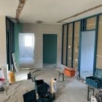 Im Anschluss folgten die Rohinstallationen – neue Leitungen für Wasser, Abwasser, Strom und Netzwerk. Die Decken haben wir komplett abgehängt, dann kam der neue Estrich. Und ab da wurde es richtig spannend.