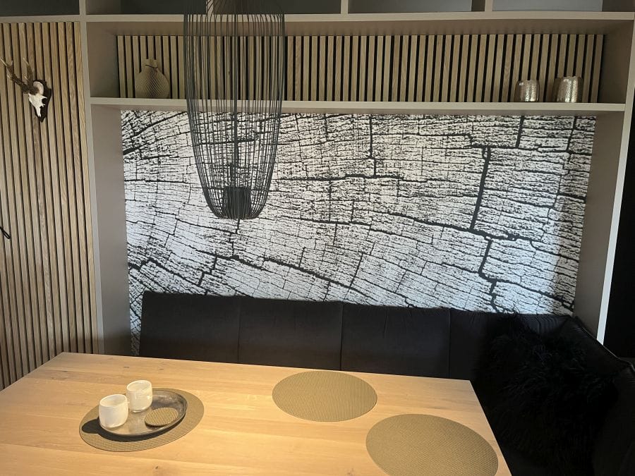 – besondere Möbelakzente mit Glamora-Tapete, deren Baumscheibenstruktur einen Bezug zur Natur schafft.